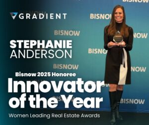 NEWS Stephanie Anderson Named Bisnow Innovator of the Year Honoree Gradient Group CEO recognized at Bisnow’s 2025 Women Leading Real Estate Awards Read More » December 4, 2025 No Comments